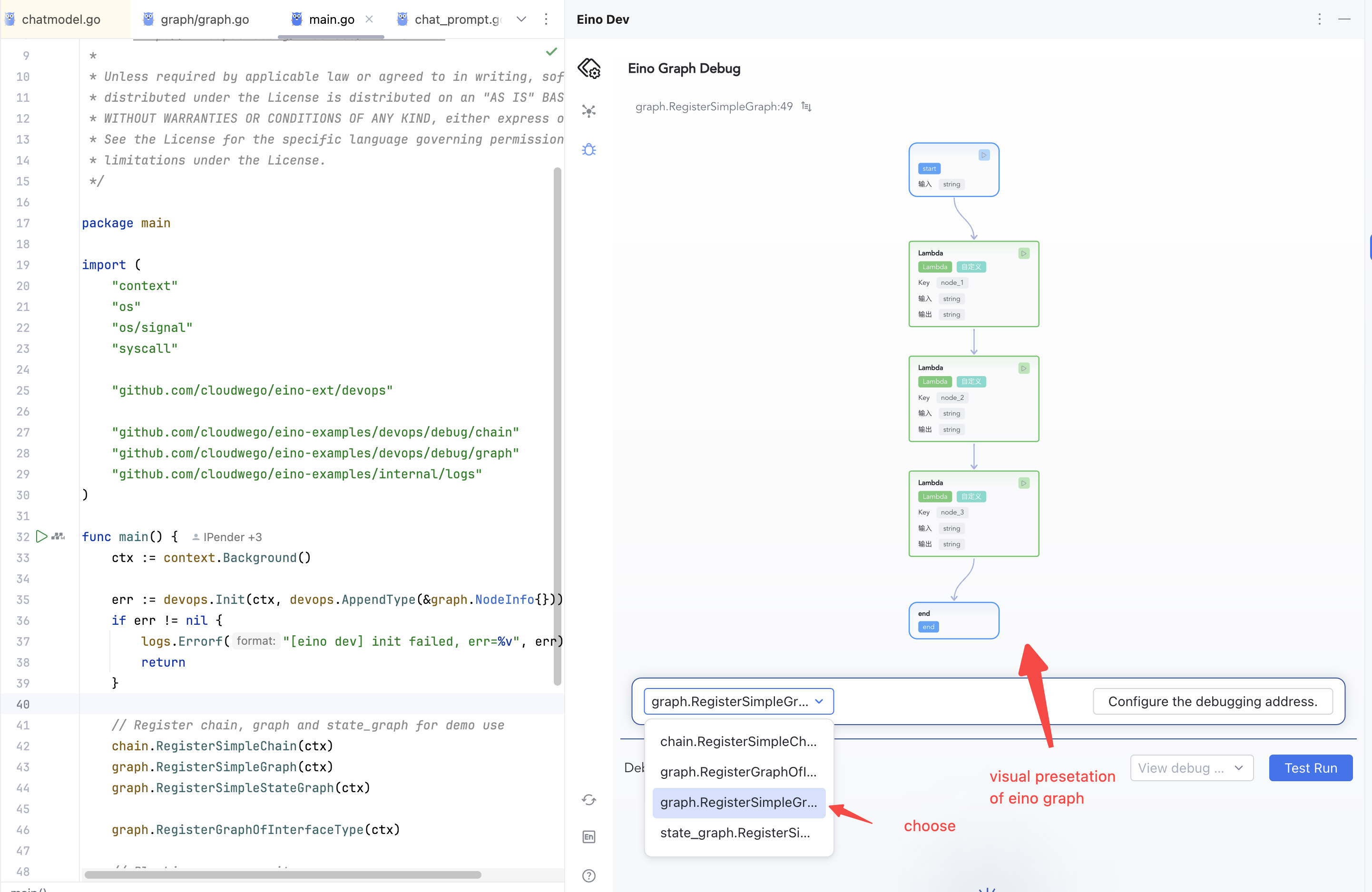 💡 Use this plugin to visually debug orchestration artifacts built with Eino (Graph, Chain):